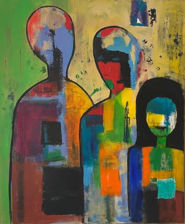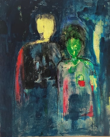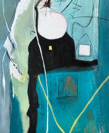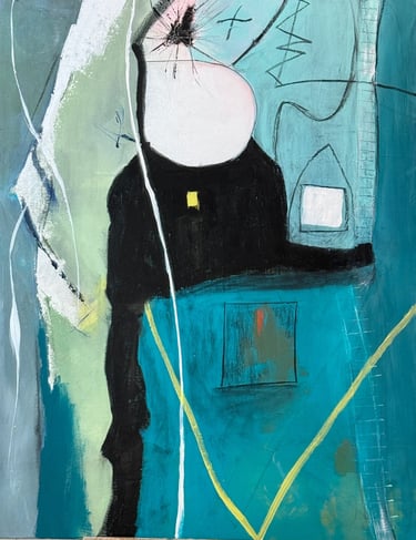 Although these are abstract works, often, shapes vaguely resembling human forms emerge as I am painting. These are not planned. They just happen, almost as though by themselves. I am fascinated by what the brain is capable of - both for the artist and the viewer.